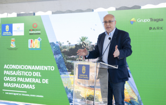 El presidente del Cabildo de Gran Canaria, Antonio Morales, presentó hoy el proyecto de acondicionamiento paisajístico del palmeral de Maspalomas, en San Bartolomé de Tirajana, financiado con 6,8 millones de euros, de los que 2,2 son aportados por la Corporación insular y 4,6 por el Ayuntamiento, e impulsado por el Consorcio para la Rehabilitación Turística de Maspalomas. "Es una obra trascendental, un referente para el municipio, para la Isla y para toda Canarias, para quienes nos visitan, para los hombres y mujeres de Gran Canaria, y, sobre todo, es fundamental para el medioambiente", manifestó el presidente insular.
