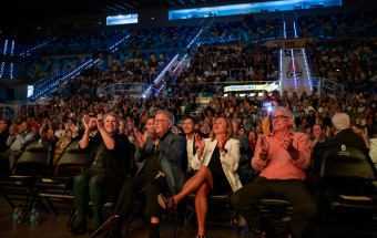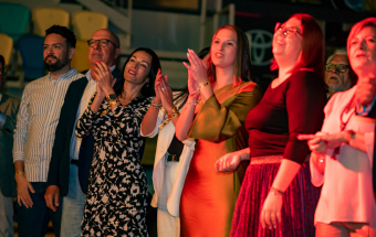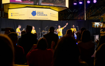 Tras la intervención de Ponce se produjo el momento más emotivo de la velada, cuando alguien se levanta entre el público y empieza a cantar ‘Ay mi Gran Canaria’, seguido por otra voz, y luego otra, y, así, hasta siete, creando una composición coral que puso el bello de punta y cristalizó los ojos de cuantos asistieron al acto.
