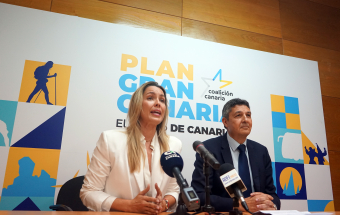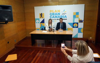 La candidata a presidir el Cabildo de Gran Canaria, María Fernández, ofreció esta mañana una rueda de prensa con su número dos, el ingeniero de Caminos y experto en movilidad, Julio Rodríguez, para dar a conocer las medidas de 'El Plan de Gran Canaria' en materia de movildiad y transporte.