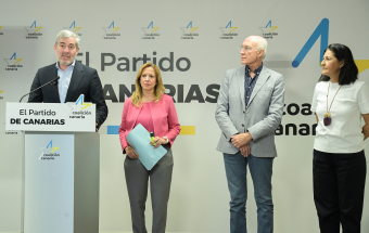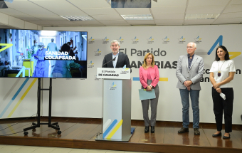 El candidato de CC a la Presidencia de Canarias, Fernando Clavijo, y la candidata a la Presidencia del Cabildo, Rosa Dávila, ofrecieron hoy una rueda de prensa en la sede de Coalición Canaria en Santa Cruz para presentar las propuestas de los nacionalistas en materia sanitaria y sociosanitaria para Tenerife.