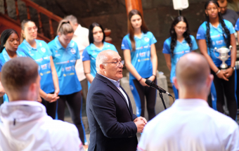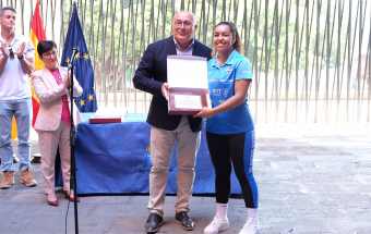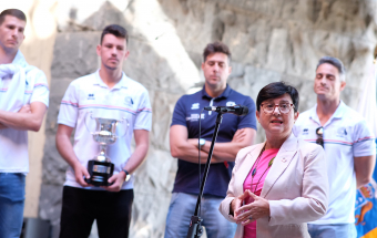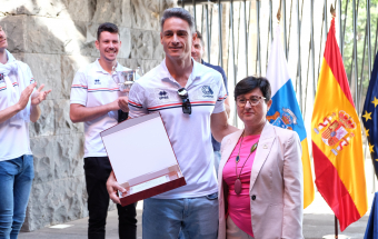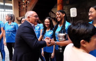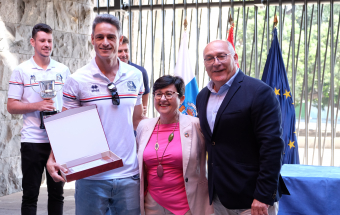 La viceconsejera de Educación, Universidades y Deportes del Gobierno de Canarias, María Dolores Rodríguez, y el director general de Deportes, Manuel López, recibieron hoy a una representación de los equipos CD Cisneros Alter y CV Cuesta Piedra, con el propósito de felicitar a sus componentes por sus recientes ascensos a las máximas categorías de voleibol, la Superliga Masculina y Liga Iberdrola femenina. El acto se desarrolló en la sede de Presidencia del Gobierno en Santa Cruz de Tenerife.