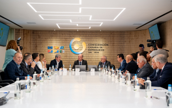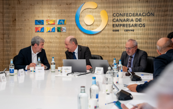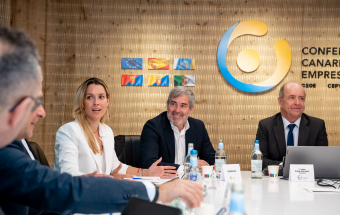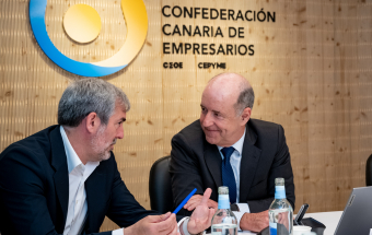 De cara al nuevo periodo político que se abre el 28 de mayo, el candidato de CC a la Presidencia compartió con los miembros de la junta directiva de la Confederación Canaria de Empresarios los riesgos que afronta el archipiélago por la duración de la invasión rusa en Ucrania, pero también por cambios en la aplicación de la regla fiscal en la Unión Europea y la amenaza de una armonización fiscal en el ámbito del Estado impulsada por el Gobierno de España. “Con los empresarios compartimos la necesidad de no rebajar nuestra defensa de Canarias, de las especificidades de las islas que tenemos reconocidas en el Estatuto de Autonomía y en nuestro Régimen Económico y Fiscal (REF)”, indicó Fernando Clavijo. “Tenemos que mantener alta la vigilancia porque todo se pone en duda cuando se produce un cambio político en Madrid e incluso cuando hay relevos en un ministerio o una secretaría de Estado”.