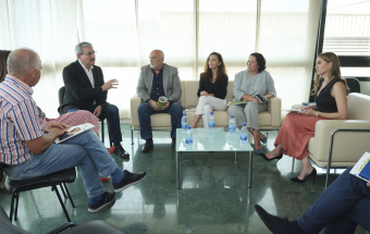 El vicepresidente del Gobierno de Canarias y candidato de Nueva Canarias a la Presidencia del Ejecutivo regional, Román Rodríguez, celebró hoy una reunión con la junta directiva de la Cámara de Comercio de Fuerteventura.