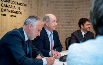 El secretario general socialista y candidato a la reelección como presidente de Canarias, Ángel Víctor Torres, ha participado este viernes en un encuentro con la Confederación Canaria de Empresarios (CCE), junto a los también candidatos Augusto Hidalgo, Carolina Darias, Sebastián Franquis y Elena Máñez, en el que ha animado al conjunto del sector privado a "seguir caminando juntos" tal y como ha ocurrido en esta legislatura.