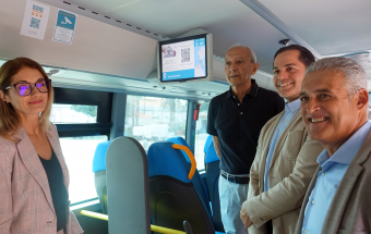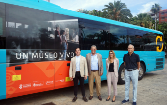 El Museo Canario, Global y la Fundación Mapfre Canarias han presentado esta mañana en el parque de Santa Catalina 'Un Museo Vivo', una exposición itinerante con contenido digital e interactivo con la que la historia de Gran Canaria recorrerá la isla a bordo de Global. Gracias a esta propuesta, las personas que viajen a bordo de las guaguas de Global podrán conocer, a través de un código QR que les aparecerá en las pantallas de TV disponibles en todas las guaguas, el origen del poblamiento de la isla y la forma de vida de los antiguos canarios.