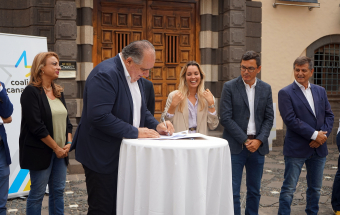 También alertó Fernando Clavijo del riesgo de polarización estatal en semanas de campaña electoral, con la amenaza de que el enfrentamiento entre Feijóo (PP) y Sánchez (PSOE) no deje protagonismo a las políticas vinculadas con las comunidades autónomas. “Tanto PP como PSOE quieren convertir la votación en una batalla entre dos, ahora ya no solo entre Feijóo y Pedro Sánchez, ahora es entre el bloque de la derecha y el bloque de la izquierda”, lamentó el líder de los nacionalistas canarios, “pero los partidos canarios que hoy firman este manifiesto tenemos claro que las elecciones del 23-J no va de derechas o de izquierdas. Las elecciones van de Canarias y por Canarias tenemos que ser capaces de aunar todos los esfuerzos y los votos posibles para defender todo lo que necesita esta tierra en un periodo político nuevo que va a ser clave”.
