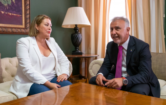 La nueva presidenta del Parlamento de Canarias, Astrid Pérez, comenzó esta mañana la ronda de reuniones con los distintos grupos parlamentarios representados en la Cámara regional, para fijar la investidura en el Gobierno de Canarias. Ángel Víctor Torres, presidente en funciones del Gobierno, asistió también representando al PSOE.