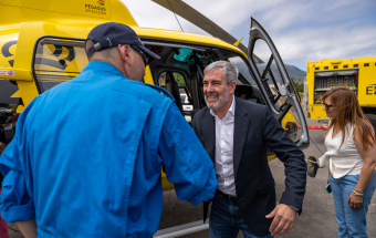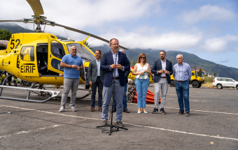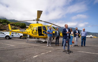 El presidente de Canarias, Fernando Clavijo Batlle, ha subrayado hoy, miércoles, el “considerable refuerzo” de los medios humanos y materiales para luchar contra los incendios en las islas después de hacer efectiva la incorporación de dos nuevos helicópteros ligeros al dispositivo contra los fuegos forestales. En La Palma, donde estará la base operativa de estos dos nuevos aparatos Airbus H125, Clavijo puso en valor la alta capacidad de movilización de los helicópteros y destacó que con esta ampliación de medios técnicos “se afianzan” dos pilares en la lucha contra los incendios: por un lado, se refuerzan las capacidades propias de cada isla y, además, estas aeronaves con capacidad para transportar hasta 900 litros de agua se podrán trasladar de isla si una situación de emergencia así lo exige.