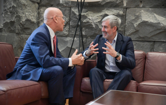 El presidente de Canarias, Fernando Clavijo, mantuvo hoy, miércoles, un encuentro con el Diputado del Común, Rafael Yanes. Durante la reunión abordaron las principales quejas ciudadanas que llegan al Diputado del Común. Asimismo, Rafael Yanes aprovechó para informar al presidente canario que a finales de este mes de septiembre presentará en el Parlamento de Canarias un informe extraordinario sobre la vivienda en las Islas desde una perspectiva social.