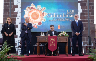La Gomera y la República de Chile ensalzaron sus lazos en el tradicional Acto Institucional de la LXII edición de las Jornadas Colombinas. El Parque de la Torre del Conde fue el escenario elegido para conmemorar el 531 aniversario de la partida de Cristóbal Colón hacia el descubrimiento de América, en una tarde marcada por el patrimonio cultural que vinculan a ambos lados del Atlántico. El presidente de Canarias, Fernando Clavijo, valoró unas Jornadas que “traen al presente lo que fuimos y lo que somos como pueblo, que ensalzan la historia compartida entre La Gomera, Canarias y América” y reconoció que para muchos canarios hablar de países como “Venezuela, Cuba, Estados Unidos, Puerto Rico, Uruguay, República Dominicana, Panamá, Argentina y también, aunque la diáspora canaria en este país es más reducida, Chile, es hablar de casa, de hogar”.