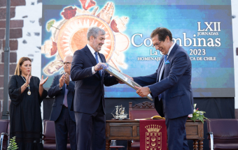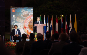 “Nos unen lazos de lengua, lazos de sangre, lazos de historia y también sueños de futuro”, aseveró. Las sociedades de ambos lados comparten inquietudes, detalló Curbelo, quien afirmó que la economía, el empleo, la estabilidad política y el coste de la vida “son temas que afectan a las familias de aquí y de allá, con sus mismos temores y sus mismas esperanzas”. Alertó de los desafíos de futuro en “un planeta en peligro por el agudo cambio climático y una humanidad que parece haber olvidado que la concordia entre los pueblos es lo que ha permitido el desarrollo de la democracia, del progreso y del bien común”. El embajador de la República de Chile, Javier Velasco, comenzó sus palabras agradeciendo la invitación para estar en La Gomera, “precisamente en la ultima isla donde comenzó ese intercambio importantísimo y del que Chile se siente tan orgulloso”.
