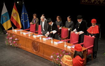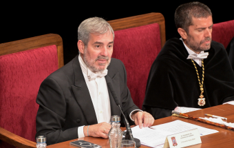 “La universidad es un actor clave de presente y de futuro porque sin universidad no hay investigación, sin investigación no hay generación de nuevo conocimiento y sin transferencia del conocimiento no ha progreso”, dijo Fernando Clavijo en su intervención ante una amplia representación de la comunidad universitaria y representantes políticos, civiles y sociales. “Y en el Gobierno somos plenamente conscientes y vamos a ejercer, de una manera decidida, una apuesta para impulsar la colaboración público-privada como un motor de cambio económico y social en nuestra región”. En este ámbito, el presidente alentó la colaboración entre administración, universidad y empresas para fortalecer los recursos sociales, laborales y económicos de las islas. “El futuro de nuestra sociedad dependerá, en gran medida, de lo rápido que asimilemos este cambio de paradigma”, subrayó Clavijo en una invitación abierta a todos los sectores implicados para “impulsar un modelo innovador de triple hélice” en el archipiélago.