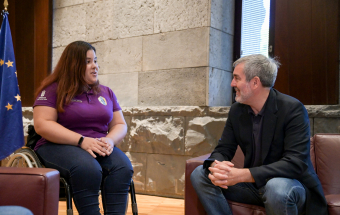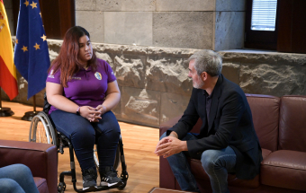 El presidente de Canarias, Fernando Clavijo, reconoció hoy la trayectoria de la escolta del ADEIN Fundación CB Canarias, Andrea Santana, y su proyección dentro y fuera del archipiélago. Clavijo, que recibió a la jugadora tinerfeña convocada por la selección española al Mundial de baloncesto en silla de ruedas femenino sub-25 que se disputará entre el 3 y el 9 de octubre en Bangkok, en Tailandia, destacó que el éxito de la jugadora tinerfeña es fruto del talento, de la disciplina y del esfuerzo. Asimismo, apuntó que “jugadoras como Andrea son un exponente del deporte canario no solo en las Islas sino en el exterior”.