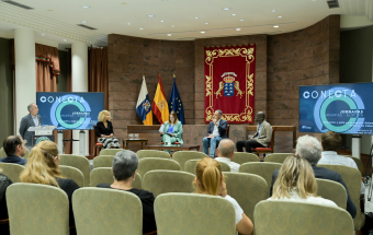 La consejera de Bienestar Social, Igualdad, Juventud, Infancia y Familia del Gobierno de Canarias, Candelaria Delgado, participó hoy en la mesa redonda "Migración en Canarias", enmarcada dentro de la segunda jornada de Conecta Canarias Europa. También participaron Mame Cheikh Mbaye Seck, cofundador y presidente de la Red Canaria de Acogida. Presidente de la Federación de Asociaciones Africanas en Canarias (F.A.A.C); Loueila Mint El Mamy, letrada y activista, abogada de extranjería y miembro de Canarias Libre de Centros de Internamiento de Extranjeros; y Vicente Manuel Zapata, director académico del Observatorio de la Inmigración de Tenerife. Profesor titular de Geografía Humana en la Universidad de La Laguna.