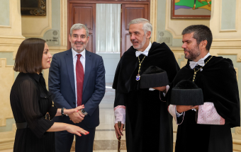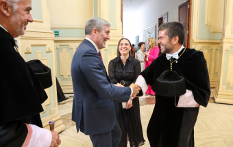 El Paraninfo de la sede institucional de la Universidad de Las Palmas de Gran Canaria (ULPGC) fue, hoy, 27 de septiembre, el escenario del Solemne Acto Oficial de Apertura del Curso Académico 2023-24. Un acto que ha estado presidido por Fernando Clavijo, Presidente de Canarias, acompañado de los dos Rectores de las Universidades públicas canarias, Lluís Serra (ULPGC) y Francisco Javier García (ULL).