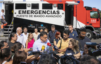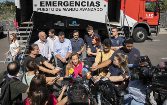 El consejero de Política Territorial y responsable de Emergencias del Gobierno de Canarias, Manuel Miranda, acompañado por la presidenta del Cabildo de Tenerife, Rosa Dávila, ofreció esta mañana una rueda de prensa desde el Puesto de Mando Avanzado del incendio originado en Santa Úrsula para ofrecer las últimas novedades sobre el suceso.