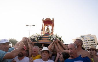 La Romería, con la Virgen instalada en la proa de la embarcación, marcando el camino, salió de Puntallana con el sonido festivo de sirenas y voladores, arribando a la bahía de San Sebastián en torno a las seis de la tarde. En ese momento, se desbordó la alegría y la emoción de las miles de personas que desde primeras horas de la tarde esperaban a la Patrona en la playa, a pesar de las altas temperaturas.