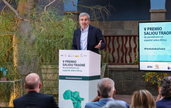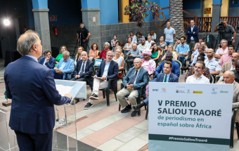 Casa África acogió hoy el acto de entrega del V Premio Saliou Traoré de periodismo en español sobre África, que cumple su quinta edición este año celebrando la labor de la periodista Glòria Pallarès Vinyoles -que no pudo viajar y se vio representada por el corresponsal de El País en Canarias, Guillermo Vega-. Pallarès resultó galardonada por un trabajo de investigación sobre la actividad extractiva de China en la República Democrática del Congo, que se publicó en 2022 en Planeta Futuro (El País). La reportera pasa a formar parte así de un listado de grandes profesionales del periodismo vinculados al continente africano, como son José Naranjo, Xavier Aldekoa, Carla Fibla y Agus Morales.