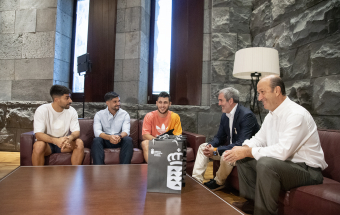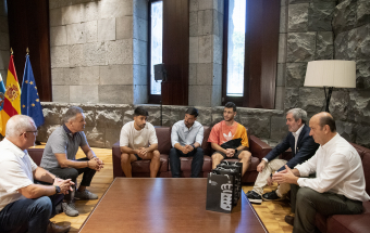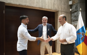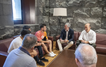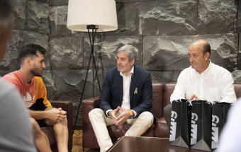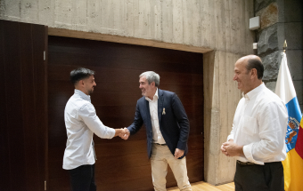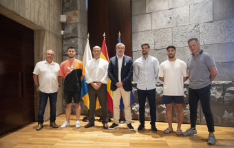 El presidente de Canarias, Fernando Clavijo, recibió esta tarde a Yeray Abreu, Cristian Jesús Suárez y Aitor Mena, los tres deportistas canarios que jugarán en el Mundial de Fútbol 7 que se celebrará entre el 25 de octubre y el 5 de noviembre en Emiratos Árabes. En la recepción también estuvo el director general de Deportes, José Francisco Pérez.
