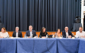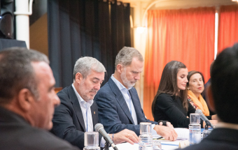 El presidente de Canarias, Fernando Clavijo, y SS.MM se reunieron hoy, en la Asociación Cultural y de Recreo de Arafo, con representantes de sectores económicos y sociales afectados por el incendio forestal. Ar