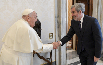 El presidente de Canarias trasladó al término de la Audiencia las palabras de agradecimiento del Papa Francisco “al pueblo canario por cómo está cogiendo a las personas que llegan a las islas, con esa dignidad, con ese arrope, con esa solidaridad. Me ha trasladado su agradecimiento a todos los canarios por ese comportamiento ejemplar lejos del discurso xenófobo”, explicó.