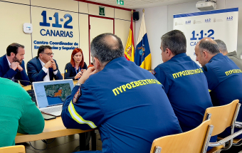 En su visita a la sede del 1-1-2 Canarias en Tenerife, el consejero mantuvo una reunión de trabajo con la delegación griega tras visitar la sala operativa que atiende las llamadas de emergencia, en la que estuvo acompañado por el Viceconsejero de Cohesión Territorial, Marcos Lorenzo; la Jefa de Protección Civil y Emergencias, Montserrat Román; así como miembros del equipo directivo del 1-1-2 Canarias.