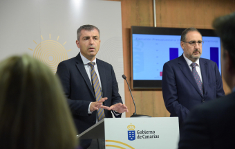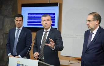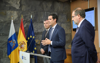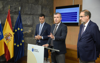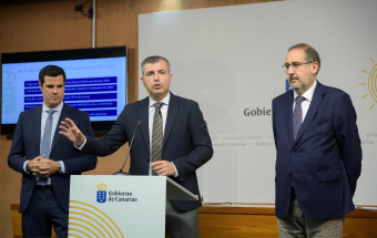 El vicepresidente y consejero de Economía, Industria, Comercio y Autónomos del Gobierno de Canarias, Manuel Domínguez, hizo balance hoy de la gestión de la Consejería que dirige. Domínguez estuvo acompañado de los viceconsejeros de Economía e Internacionalización, Gustavo González de Vega; y de Industria, Comercio y Consumo, Felipe Afonso El Jaber.