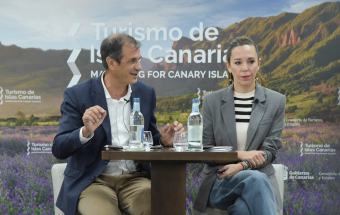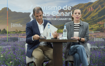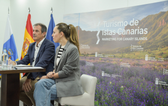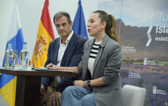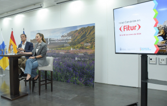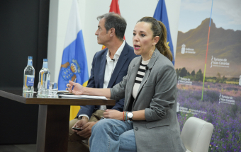 La consejera de Turismo y Empleo del Gobierno de Canarias, Jéssica de León, y el director gerente de Promotur, José Juan Lorenzo, ofrecieron hoy una rueda de prensa en el Hotel Escuela de Santa Cruz de Tenerife para informar sobre la presencia de la delegación canaria en Fitur.
