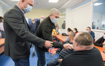 Durante el recorrido por las instalaciones del centro, Fernando Clavijo y Candelaria Delgado pudieron interactuar con las personas usuarias de entre 18 y 60 años que desarrollan su actividad, unos en un Taller Laboral y otros en un Taller Ocupacional.