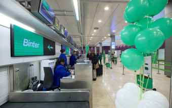 La compañía ha abierto la primera oficina aeroportuaria Binter Vende fuera de Canarias, situada en la planta alta (Salidas) de la Terminal 2 del Aeropuerto Adolfo Suárez - Madrid Barajas, cerca de la puerta norte de acceso y de los mostradores de facturación de la compañía. El horario de atención será amplio (de 5:30 a 21:30 horas), para atender toda la operativa de la compañía aérea, los 365 días del año.