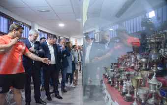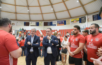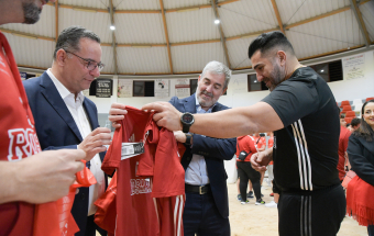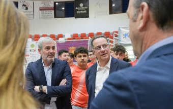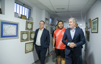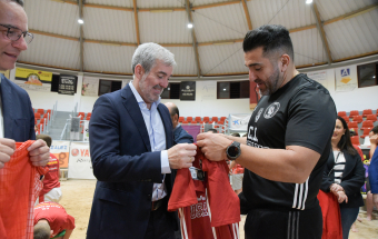El presidente de Canarias, Fernando Clavijo, visitó este pasado martes por la tarde, junto al consejero de Educación, Formación Profesional, Actividad Física y Deportes, Poli Suárez, al Club de Lucha El Rosario con motivo de su 80 aniversario.