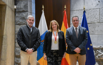 El presidente de Canarias, Fernando Clavijo, recibió hoy a la medalla de oro en el Campeonato de España de 3D en Sala y Campeonato de España de Arco Tradicional, Longbow y Arco Desnudo en Sala 2024, Yanira Pérez. Al encuentro también asistió el consejero de Educación, Formación Profesional, Actividad Física y Deportes, Poli Suárez.