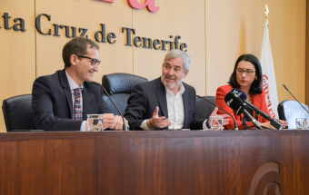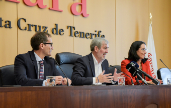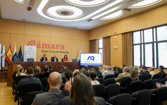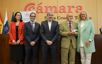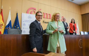 El presidente de Canarias, Fernando Clavijo, clausuró hoy el acto de entrega de los Premios de Excelencia Química 2023 otorgado por el Consejo General de Colegios Oficiales de Químicos de España a la empresa canaria Ascanio Química, SA.