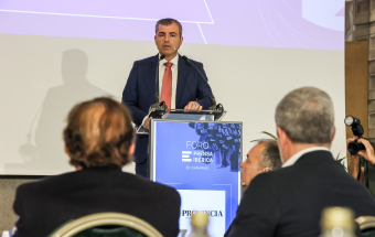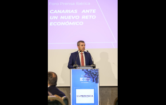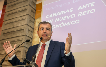 El presidente de Canarias, Fernando Clavijo, asistió esta mañana a la conferencia del vicepresidente del Gobierno, Manuel Domínguez, en el Foro de Prensa Ibérica.