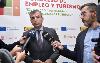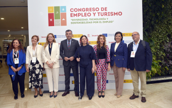Hoy se llevó a cabo la inauguración del Congreso de Empleo y Turismo 'Diversidad, tecnología y Sostenibilidad por el Empleo', en el Hotel GF Victoria de Adeje. Al acto asistieron el vicepresidente del Gobierno de Canarias, Manuel Domínguez; la viceconsejera de Igualdad del Gobierno de Canarias, Cristina Arceo; la secretaria general de Fundación ONCE e Inserta Empleo y directora de Excelencia, Transformación e Igualdad de la Fundación ONCE, Virginia Carcedo; y el alcalde de Adeje, José Miguel Rodríguez Fraga.