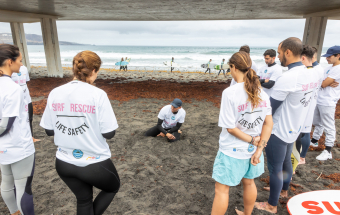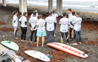 El director general de Juventud del Gobierno de Canarias, Daniel Morales, visitó esta mañana de sábado la actividad del curso "Primeros auxilios y rescate con tabla de surf", dentro del Proyecto Surf Rescue organizado por la Asociación de Socorristas de Canarias (ASOCAN) en colaboración con la Dirección General de Juventud del Gobierno de Canarias, y que se dirige a enseñar a jóvenes que practican deportes acuáticos técnicas de prevención y autoprotección en la costa, así como de rescate con la tabla de surf y primeros auxilios.