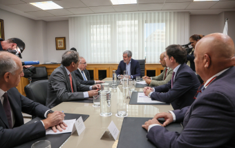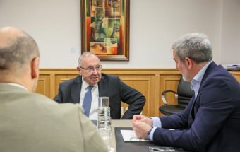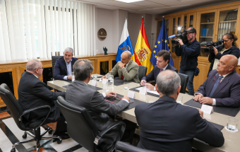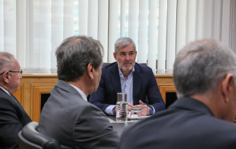 El presidente de la Cámara de Comercio de España, José Luis Bonet, acompañado del presidente de la Cámara de Comercio de Gran Canaria, Luis Padrón; el presidente de la Cámara de Santa Cruz de Tenerife, Santiago Sesé; el presidente de la Cámara de Fuerteventura, Juan Jesús R. Marichal y el secretario general de la Cámara de Comercio de España, Adolfo Díaz-Ambrona, se reunió esta mañana con el presidente del Gobierno de Canarias, Fernando Clavijo, para presentarle el proyecto de la creación de la Asociación Iberoafricana de Cámaras de Comercio. En la reunión también estuvo el viceconsejero de Presidencia, Alfonso Cabello.