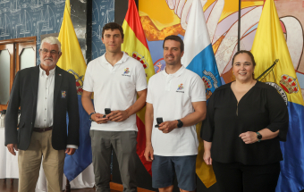 El Real Club Náutico de Gran Canaria recibió hoy a los dos regatistas de la institución que han logrado plaza para competir en los próximos Juegos Olímpicos de París que tendrán lugar en agosto -Andrés Barrio y Joaquín Blanco- en un acto al que acudieron el viceconsejero de Deportes del Gobierno de Canarias, Ángel Sabroso, el director general de Deportes del Ejecutivo regional, José Francisco Pérez, el consejero de Deportes del Cabildo insular, Aridany Romero, y la edil de Deportes del Ayuntamiento capitalino, Carla Campoamor, además de autoridades militares, Salvamento Marítimo, Capitanía Marítima y Federación Canaria de Vela, y en el que recibieron de manos de la presidenta de la institución, Maica López, y del vicepresidente Adolfo López, la insignia de oro del club y palabras de “orgullo y aliento” de cara al reto deportivo que tienen por delante.