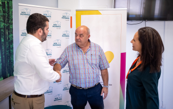 La sede del Grupo 1844 en Arinaga acogió hoy la firma de un convenio de colaboración entre la Fundación Nos Movemos y el Instituto Internacional del Valor Compartido para iniciar un proyecto de desarrollo e implantación de un plan estratégico de sostenibilidad en línea con el modelo certificado CCVC2030 del IIVC certificado por OCA GLOBAL.