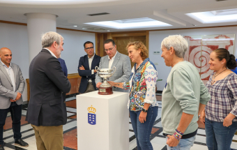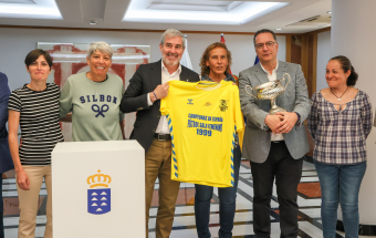 El presidente de Canarias, Fernando Clavijo, recibió hoy a las jugadoras y cuerpo técnico de la Selección Canaria de Fútbol Sala Femenina que hace 25 años se hicieron con el título del Campeonato de España de Selecciones Autonómicas. Al acto también asistió el consejero de Educación, Formación Profesional, Actividad Física y Deportes, Poli Suárez, así como, el presidente de la Federación Interinsular de Fútbol de Las Palmas, José Juan Arencibia, y representantes de la junta directiva de la FIPLP.
