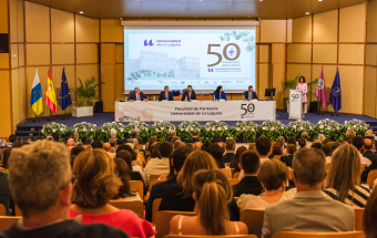 El presidente de Canarias, Fernando Clavijo, intervino este pasado sábado por la tarde en el acto que conmemora el 50 aniversario de la Facultad de Farmacia de la Universidad de La Laguna, ULL.