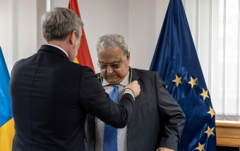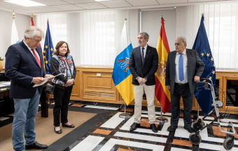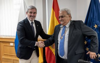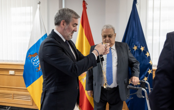Fernando Clavijo entreg esta maana en Las Palmas de Gran Canaria el Collar de la Orden Islas Canarias al expresidente del TSJC, Antonio Castro Feliciano.