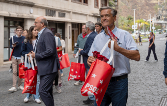 El eurocandidato socialista, Juan Fernando López Aguilar, continuando con su campaña electoral, recorrió esta tarde la Calle Real de Santa Cruz de La Palma.