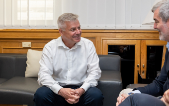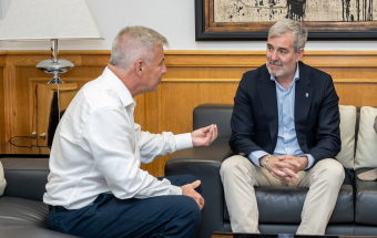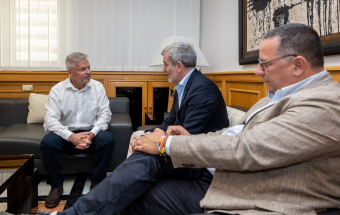 Clavijo, acompañado de Poli Suárez, consejero de Educación, Formación Profesional, Actividad Física y Deportes del Gobierno de Canarias, tuvo la oportunidad de conversar con Calixto Herrera sobre sus años trabajando para situar a la enseñanza pública canaria en niveles de excelencia.