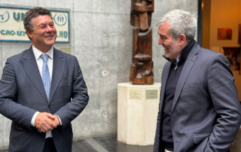 El presidente de Canarias, Fernando Clavijo, continúa la hoja de ruta para lograr respuestas a la crisis migratoria que se mantiene desde hace trece meses en las islas. Así el jefe del Ejecutivo canario mantuvo dos encuentros este martes en Ginebra con responsables de Acnur y Unicef con el fin de seguir recabando el “asesoramiento y la ayuda internacional para poder administrar y gestionar un fenómeno que está teniendo una gran intensidad, la mayor de toda Europa, este momento en Canarias”.