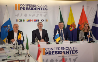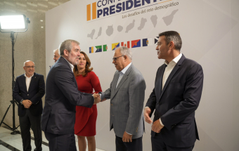 El presidente de Canarias, Fernando Clavijo, presidió este martes en la sede de Presidencia de la capital grancanaria la reunión de la II Conferencia de Presidentes sobre ‘Los desafíos insulares del reto demográfico en Canarias’. La reunión contó con la asistencia del vicepresidente del Gobierno de Canarias y consejero de Economía, Industria, Comercio y Autónomos, Manuel Domínguez, el conejero de Obras Públicas, Vivienda y Movilidad, Pablo Rodríguez, la consejera de Presidencia, Administraciones Públicas, Justicia y Seguridad, Nieves Lady Barreto, el consejero de Política Territorial, Cohesión Territorial y Aguas, Manuel Miranda, la consejera de Turismo y Empleo, Jéssica de León, el consejero de Transición Ecológica y Energía, Mariano Zapata, y el viceconsejero de Presidencia, Alfonso Cabello, así como, los presidentes de los cabildos de Tenerife, Rosa Dávila, de Lanzarote, Oswaldo Betancort, de El Hierro, Alpidio Armas, de Fuerteventura, Lola García, de Gran Canaria, Antonio Morales, y de La Gomera, Casimiro Curbelo, ya que la prealertapor lluvias impidió que pudiera desplazarse el presidente de la corporación insular de La Palma, Sergio Rodríguez.