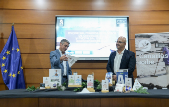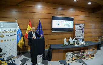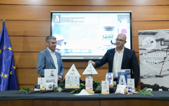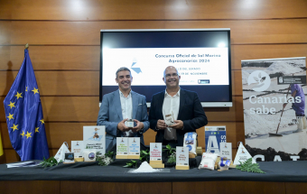 El consejero de Agricultura, Ganadera, Pesca y Soberana Alimentaria del Gobierno de Canarias, Narvay Quintero, y el director del Instituto Canario de Calidad Agroalimentaria (ICCA), Luis Arrez, anunciaron esta maana cules han sido las producciones premiadas en el Concurso Oficial de Sal Marina Agrocanarias 2024.