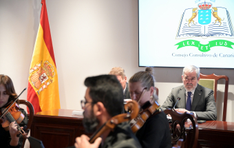 El presidente del Gobierno de Canarias, Fernando Clavijo, asistió esta mañana a la entrega de la memoria del Consejo Consultivo de Canarias en un acto en el que participó su presidente, Carlos Millán.