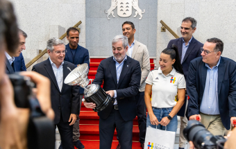 Acompañado por el vicepresidente del Gobierno, Manuel Domínguez, y por el consejero de Deportes, Poli Suárez, Clavijo quiso felicitar personalmente al equipo por un triunfo “histórico y profundamente merecido”, que, según destacó, “es fruto del trabajo constante, la pasión y el compromiso de un grupo que ha sabido superar retos y alcanzar la excelencia deportiva”. El presidente subrayó que el Heidelberg “no solo ha hecho historia en la cancha, sino que se ha convertido en un referente del deporte femenino y en un orgullo para toda Canarias”.