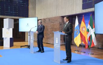 El presidente de Canarias, Fernando Clavijo, recibió hoy, en la sede de Presidencia de Santa Cruz de Tenerife, al lehendakari vasco, Imanol Pradales, de visita oficial en Canarias.